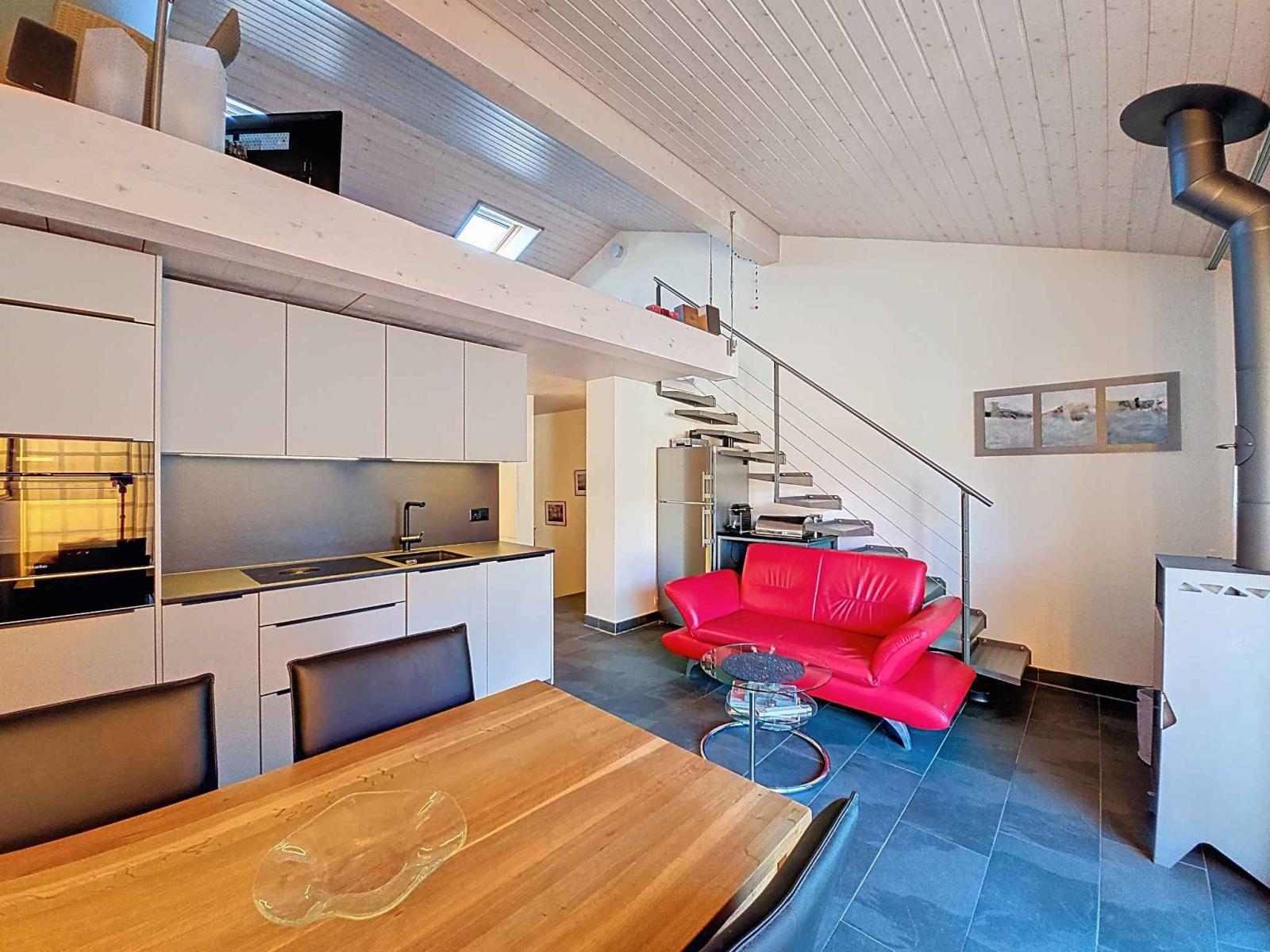Construite en 2007 sur une belle parcelle en PPE, la propriété résulte de la réunion de deux appartements, offrant ainsi le confort et les volumes d’une maison individuelle tout en bénéficiant des avantages pratiques d’un appartement. Elle dispose notamment d’un ascenseur privatif permettant un accès direct aux différents étages, un atout rare et particulièrement appréciable.
