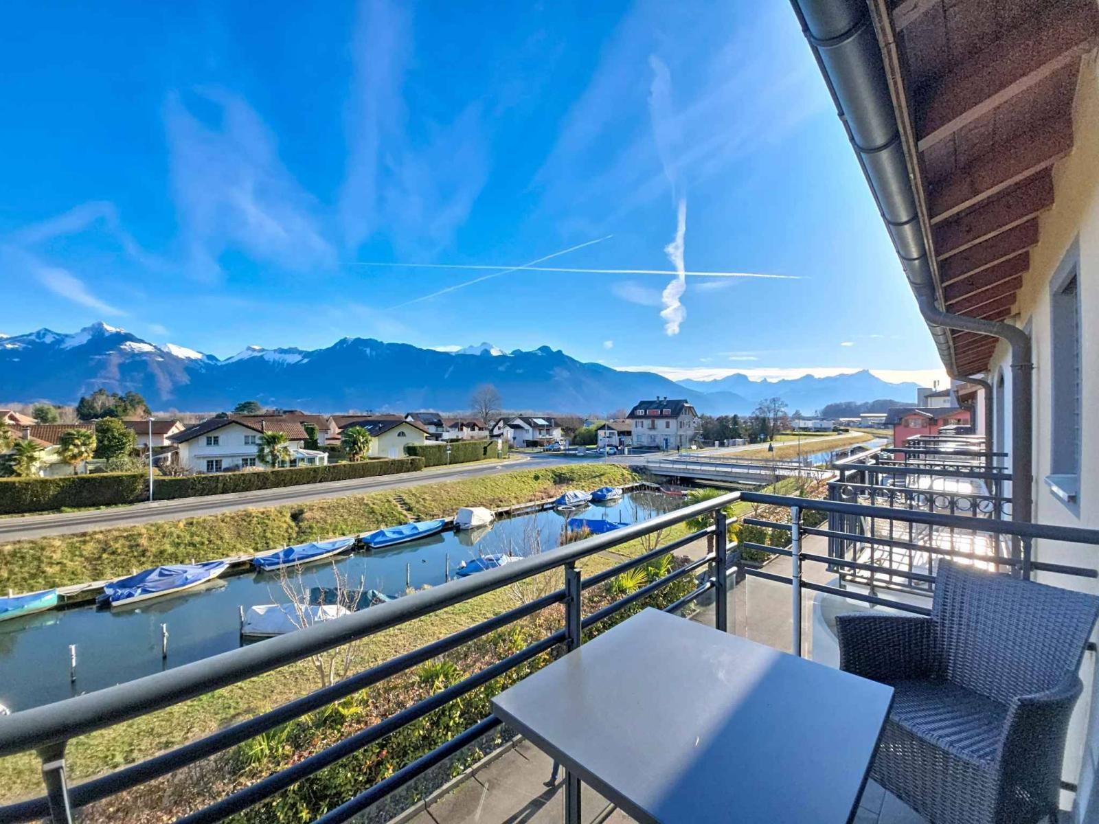 - Une chambre à coucher avec balcon et vue sur le canal et les Alpes ;