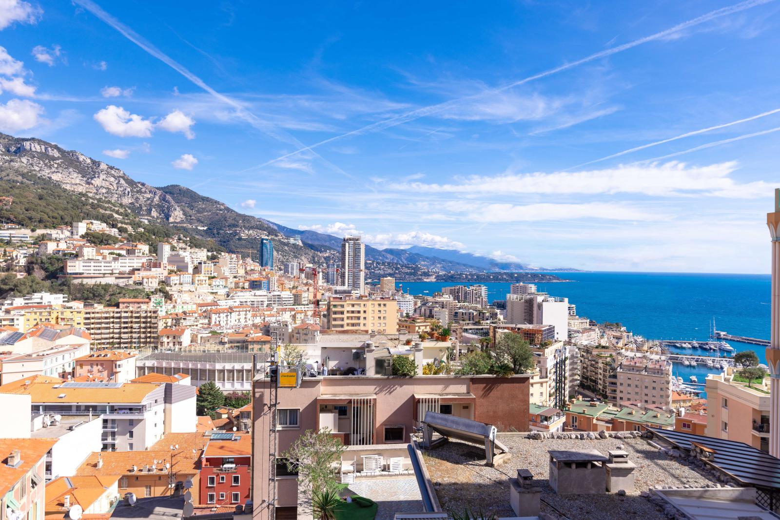 Superbe deux pièces entièrement rénové avec des matériaux haut de gamme, offrant une magnifique terrasse avec vue imprenable sur le Port Hercule, la Méditerranée et le Rocher de Monaco.