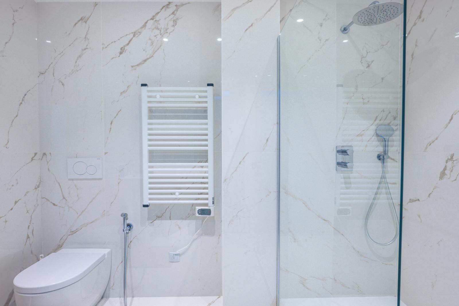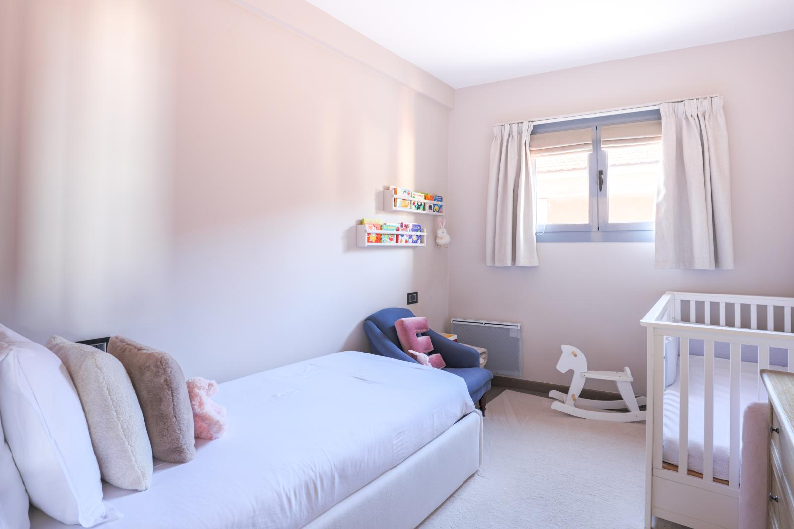 L’appartement est composé d’un hall d’entrée avec rangements, d’un salon avec une cuisine américaine entièrement équipée menant à une vaste terrasse donnant sur les jardins du casino, de deux chambres avec chacune leur propre salle de bains en marbre et d’une abondance de rangements. Une autre terrasse de la deuxième chambre offre une vue imprenable sur le port et le rocher.