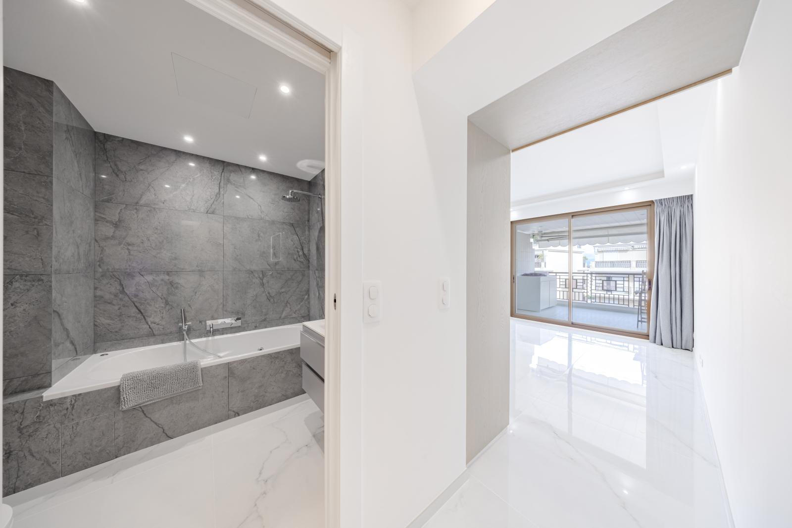 Superbe deux pièces entièrement rénové avec des matériaux haut de gamme, offrant une magnifique terrasse avec vue imprenable sur le Port Hercule, la Méditerranée et le Rocher de Monaco.