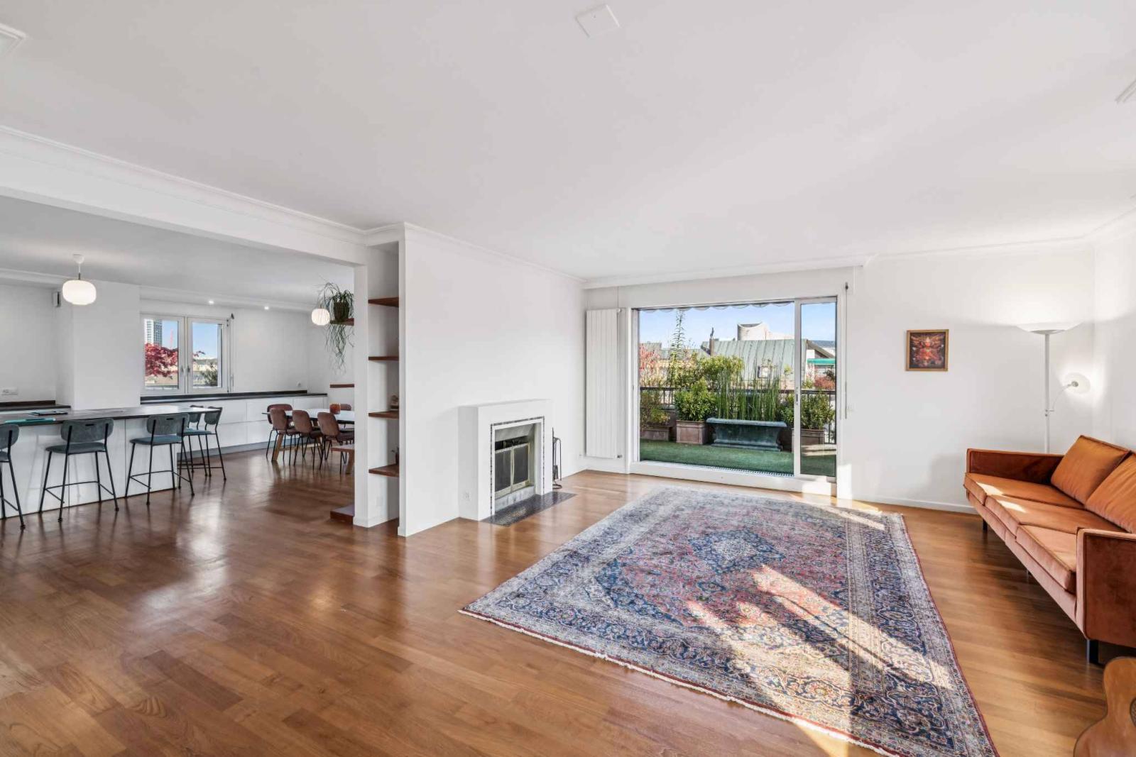 Offrant une surface PPE de 205 m² et une vaste terrasse de 141 m², l’appartement séduit par sa vue dégagée sur la ville et sa localisation.