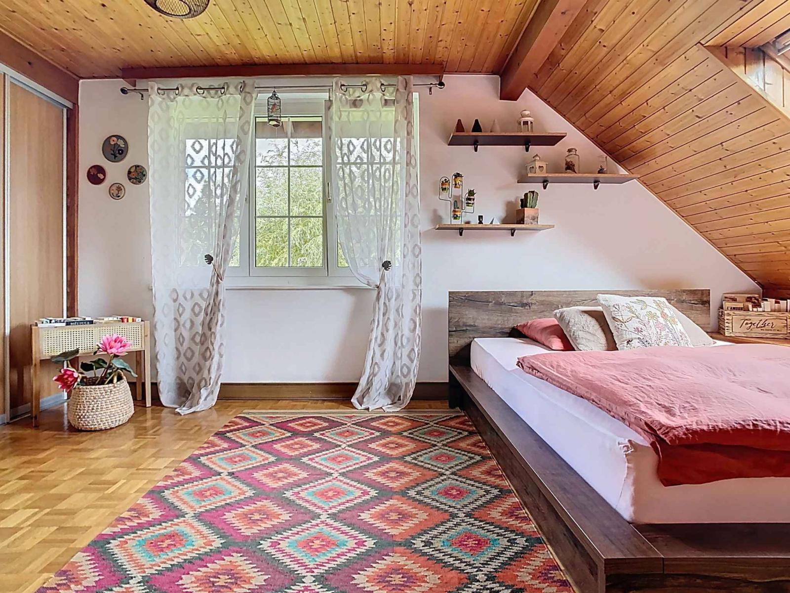Édifiée en 1997 sur une parcelle d’environ 1’384 m², la villa développe environ 140 m² habitables et près de 200 m² de surface utile, répartis sur plusieurs niveaux. Son orientation sud-ouest et ses larges ouvertures lui permettent de profiter d’un ensoleillement optimal ainsi que d’une vue dégagée sur les montagnes, le lac et le Jura.