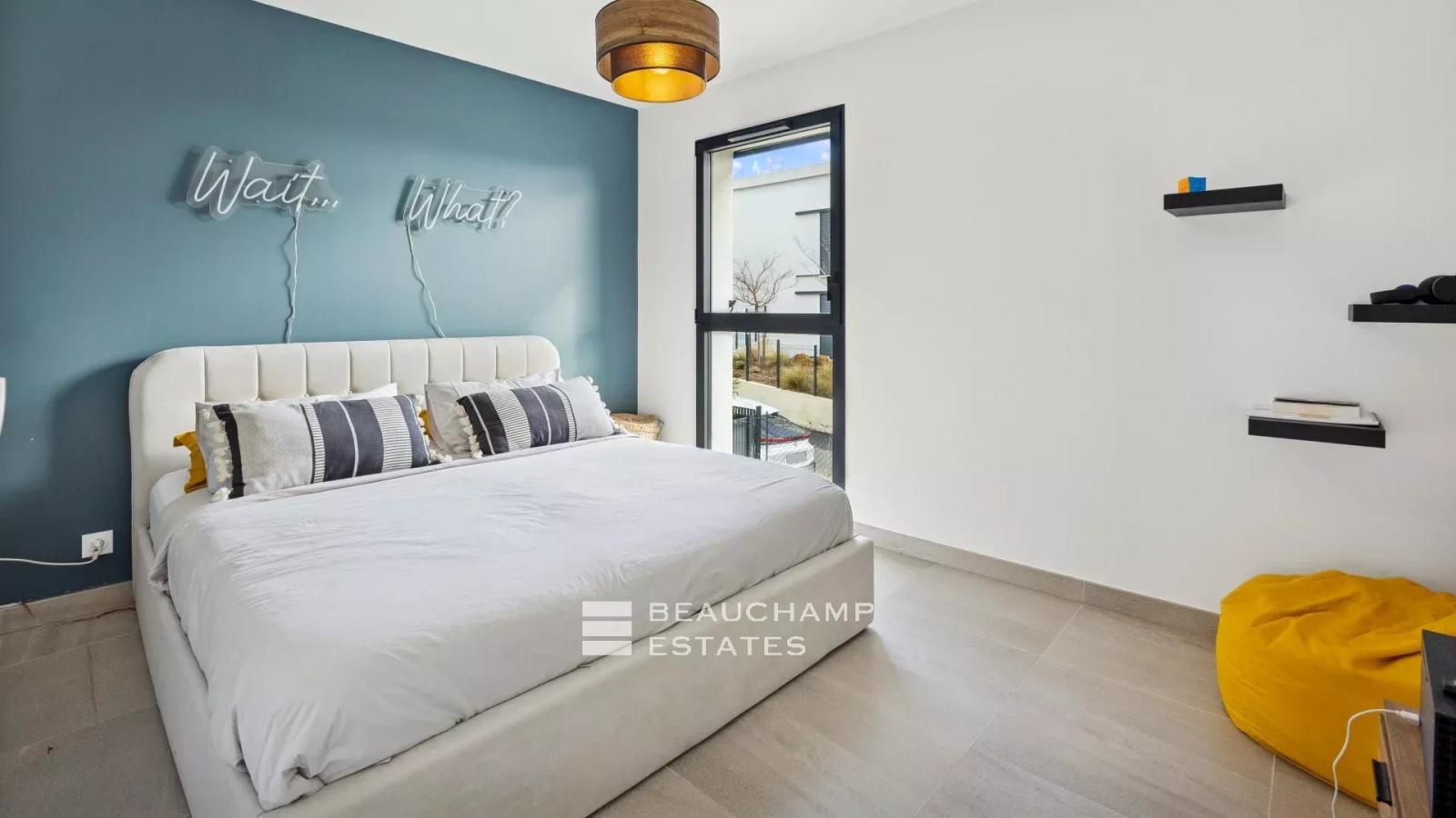 L’espace nuit accueille une suite parentale avec dressing et salle de douches, ainsi que deux chambres supplémentaires, chacune disposant de sa salle de bains ou salle de douches en suite. Un bureau et une buanderie viennent compléter ce niveau, totalisant plus de 250 m².