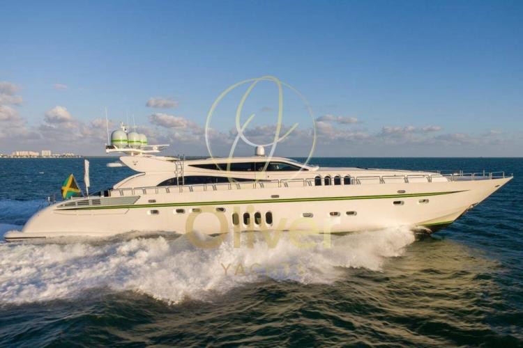 Il s'agit d'un magnifique Riva Opera 85, il a été fini selon les normes les plus élevées et offre un intérieur élégant et spacieux. Ce Riva Opera 85 de 2006 est équipé de spécifications élevées, qui comprennent un ensemble complet de navigation Raymarine, 1 générateur Kohler de 23 kW et 1 générateur Kohler de 20 kW, la climatisation, un dessalinisateur Idromar de 180 l/h et bien plus encore.