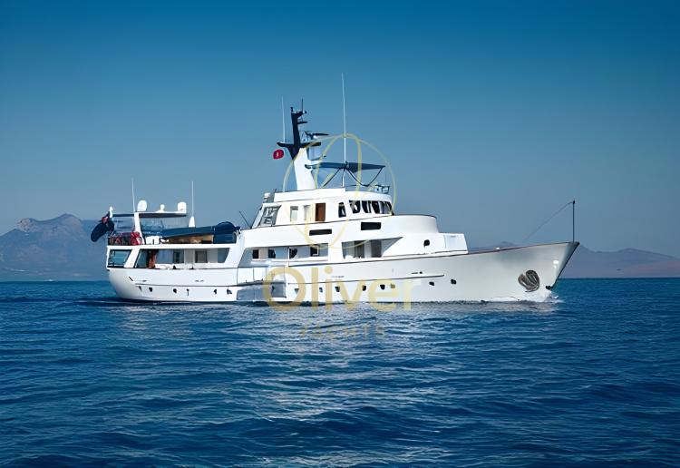 Ce Navetta 33 a été construit en 2013. Ce yacht peut accueillir jusqu’à 11 personnes dans cinq cabines luxueuses. Avec de la place pour un équipage de six personnes, assurant un excellent service et l’intimité de tout le monde à bord. Le yacht est propulsé par deux moteurs MAN V8, permettant une vitesse de croisière de 12 nœuds et une vitesse maximale de 15 nœuds. Cet équilibre entre puissance et efficacité assure une croisière en douceur sur de longues distances.Avec une capacité de carburant de 20 000 litres, le Navetta 33 à vendre est bien préparé pour les croisières longue distance. Le Navetta 33 dispose d’un aménagement à trois ponts avec la configuration typique de 5 cabines pour les invités, avec le maître à l’avant sur le pont principal et les 4 autres sur le pont inférieur. Le quartier de l’équipage est facilement accessible depuis la cuisine.Ce yacht comprend un jacuzzi, un club de plage élégant et divers espaces de restauration et de détente, à l’intérieur et en plein air. L’aménagement du yacht est parfait pour organiser des réunions sociales ou profiter d’une retraite paisible en mer.L’intérieur de la Navetta 33 se caractérise par des matériaux de haute qualité avec une sensibilité de design moderne. Les tons neutres sont associés à des finitions luxueuses, créant une atmosphère chaleureuse et accueillante qui équilibre sophistication et confort.Equipement électronique de navigation:AIS, Indicateur d'angle de barre, Antenne radar (Furuno radar antenna Open Array), Commande électrique, Ordinateur fixe de bord, Compteur de chaîne, Moniteur, DSC VHF, Plotter GPS.Equipement de pont:Alarme gaz, Alarme moteur, Alarme de pompe de cale, Alternateur, 2 Ancre (2 x 105 Kg), Eau sous pression, Passavant en teck, Couleur spéciale, Douche de cockpit, Double barre à roue, Flaps hydrauliques, Grue de flybridge, Extincteur(s) fixe(s), Indicateurs de flaps, Lavage de chaine, Éclairage de courtoisie, Passerelle, Pont en teck, Porte latérale, Cockpit en teck, Prise de quai, Connexion eau sous pression à quai, Stabilisateurs (Fins + 3xGyroscopic stabilizers Mitsubishi ARG MSM-4000), table de cockpit, Annexe (Williams Turbojet 325 from 2018 (50 engine hours)), Corne, Winch électrique arrière, Winch électrique avant.Equipement intérieur:Air conditionné (60004 WM RE CO3 (240000 BTU/h) + water heater), Ballon d'eau chaude (2 x Gianneschi 150 lt), Air Conditionné, Connexion à internet, Connexion Internet par satellite, Dessalinisateur (Vertical Idromar MC3J), Plancher intérieur en bois, Prises interieures 12v, Prises interieures 220v, Toilettes électriques.Divers:Haut-parleurs, Antenne satellite TV, Radio AM/FM.Sellerie et tauds:Sellerie complète, Coussins arrieres, Coussin avant, Sellerie de fly, sellerie de cockpit, Rideaux occultants.