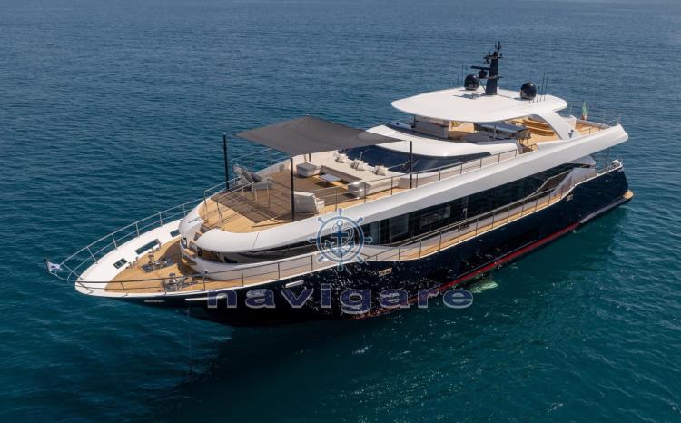 Le Sanlorenzo SD112, construit en 2018 et conçu par Francesco Paszkowski, est un superbe superyacht de 34,10 mètres qui incarne le luxe, le raffinement et l’artisanat exceptionnel. Avec de vastes espaces de vie et des équipements sophistiqués, ce yacht est conçu pour offrir un confort et une intimité inégalés pouvant accueillir jusqu’à 11 invités dans 5 cabines avec salle de bain.Le pont principal dispose d’un salon spacieux et lumineux avec des sièges moelleux, menant sans problème à la salle à manger formelle, qui peut accueillir confortablement jusqu’à huit personnes. La cabine principale, située à l’avant, offre une retraite sereine avec des vues panoramiques et une luxueuse salle de bains en marbre. Le pont inférieur abrite deux cabines VIP avec des lits doubles et deux cabines invités, l’une avec un lit pullman, toutes avec des salles de bains en marbre opulentes.La conception du yacht met l’accent sur l’intimité, avec un aménagement qui sépare les quartiers de l’équipage des cabines des invités via un escalier dédié. L’intérieur présente une palette de couleurs neutres, des matériaux luxueux tels que le parquet, le marbre et des tissus d’ameublement sur mesure, mêlant élégance contemporaine et tradition maritime.À l’extérieur, la plate-forme de bain offre un accès facile à l’eau, et le pont principal à l’arrière offre des sièges confortables pour des rassemblements détendus. Le pont supérieur arrière dispose d’un canapé moelleux, d’une salle à manger en plein air et d’une connexion transparente au salon du ciel. Le flybridge, avec une vue à 360 degrés, des chaises longues, un jacuzzi caché et un bar avec évier, offre un cadre idéal pour la détente et le divertissement.Le Sanlorenzo SD112 est un véritable chef-d’œuvre, combinant des intérieurs luxueux, de vastes espaces extérieurs et un savoir-faire méticuleux, établissant une nouvelle norme en matière de confort, de sophistication et d’intimité sur l’eau.Equipement électronique de navigation:Indicateur d'angle de barre, Antenne radar, 2 Commande électrique, 2 Moniteur (1 PLC in WheelHouse, 1 PLC in the Crew Area), DSC VHF, Sondeur pêche (Simrad), Ordinateur de bord, Loch (Simrad), 2 Pilote automatique (Simrad), 3 Lecteur de cartes (Simrad), 2 Radio VHF.Equipement de pont:Alarme gaz, 2 Alarme moteur, Alarme de pompe de cale, 2 Ancre (180Kg), Eau sous pression, Passavant en teck, Douche de cockpit (Removable for Aft platform), Double barre à roue, Propulseur d'étrave (Electrical), Phare de poursuite, Garage à annexe (and jetski), Hard top (Triangular above the custom Jacuzzi facing forward), Extincteur(s) fixe(s), 2 Lavage de chaine, Lavabo dans le cockpit (On the Upper Deck), 5 Spots sous-marins (Oceanled 3200 Lumen (n.4 on the transom; n.1on the bow bulb)), Passerelle (Electro-Hydraulic), Plateforme arrière, Pompe de cale automatique, Pompe de cale manuelle, Porte latérale, 3 Porte latérale, Cockpit en teck, Connexion eau sous pression à quai, Onduleur, Répétiteur électronique, 2 Guindeau électrique, Echelle de bain, Système de filtration des eaux usées (Tecnicomar mod. Ecomar 45), Stabilisateurs (CMC Electric zero-speed stabilizers), Corne, 2 Winch électrique arrière, 2 Winch électrique avant.Equipement intérieur:Air conditionné (240.000 btu), 2 BBQ/ Grill (Gaggenau VR 414 110 in the flybridge), Ballon d'eau chaude, Coffre-fort (In the Master Cabin and in the Captain Cabin), Air Conditionné, Connexion à internet (Wi-Fi system 4G), Gradateur de lumière (Exterior), Dessalinisateur (Idromar 210 l/h), Cuve à eaux noires, Plancher intérieur en bois, Prises interieures 12v, Prises interieures 220v, Réservoir d'eau noire, 6 Caméra vidéo, Caméra infrarouge (FLIR), Toilettes électriques.Divers:Haut-parleurs, Antenne satellite TV (SeaTel ST24E + Empty Radome SEATEL ST248), Mécanisme de levage de télévision (in the master cabin), Radio AM/FM, Hi-Fi.Equipement de confort:Sèche linge (Miele), Four (90cm), 3 Réfrigérateur intérieur (1 MABE/G.E. PFME 1NFNB in the Galley, Additional fridge in the Main Deck Saloon, Additional fridge in the Flybridge), 2 Machine à glaçons (1 in the Main Deck Saloon, 1 in the Upper Deck Pantry), 2 Lave-vaisselle (Miele PG 8083 SCVi Professional in the galley, additional Comenda LF322MA in the Crew Mess), Lave-linge (Miele), 2 Four micro-ondes (1 in the galley, 1 combined Whirlpool AMW 836/XL in crew mess), Plaque vitrocéramique (90cm), Winecooler (Gaggenau 64 bottles).Sellerie et tauds:Sellerie complète, Coussins arrieres, Coussin avant, Sellerie de fly, sellerie de cockpit, Taud de console, Taud de siège, Taud de soleil (Upper Deck cockpit awning).Notes équipement:ÉquipementMaître de câble 30mRavitaillement en carburant dans le garage Isolation acoustique supplémentaire dans la cloison entre la salle des machines et les cabines 3 téléviseurs dans les 3 cabines d’équipage Installation d’un onduleur pour antenne audio/vidéo/SAT CCTV IP : 1 motorisé dans la cabine de manœuvre + 2 motorisés dans les passerelles latérales, 1 motorisé + 2 fixes dans la salle des machines + 1 moniteur dédié au poste de timonerie (avec DVR) Forfait Simrad Diamond Caractéristiques extérieures Platelage en teck dans le flybridge Jacuzzi sur mesure sur le flybridge avec système d’eau de mer Balcon latéral avec porte latérale donnant sur le salon sur le pont principal Modification de la porte du cockpit de ronde à droite Bar dans le cockpit du pont supérieur, en teck et Corian Parapluie pour la table à l’avant Caractéristiques intérieures Salle de bain supplémentaire sur le pont supérieur Table supplémentaire à la timonerie avec une base en acier inoxydable poli et un plateau en bois Mur + porte coulissante entre le poste de pilotage et l’escalier des invités en verre trempé Rideau enroulable électrique avec guides entre le salon du pont supérieur et le poste d
